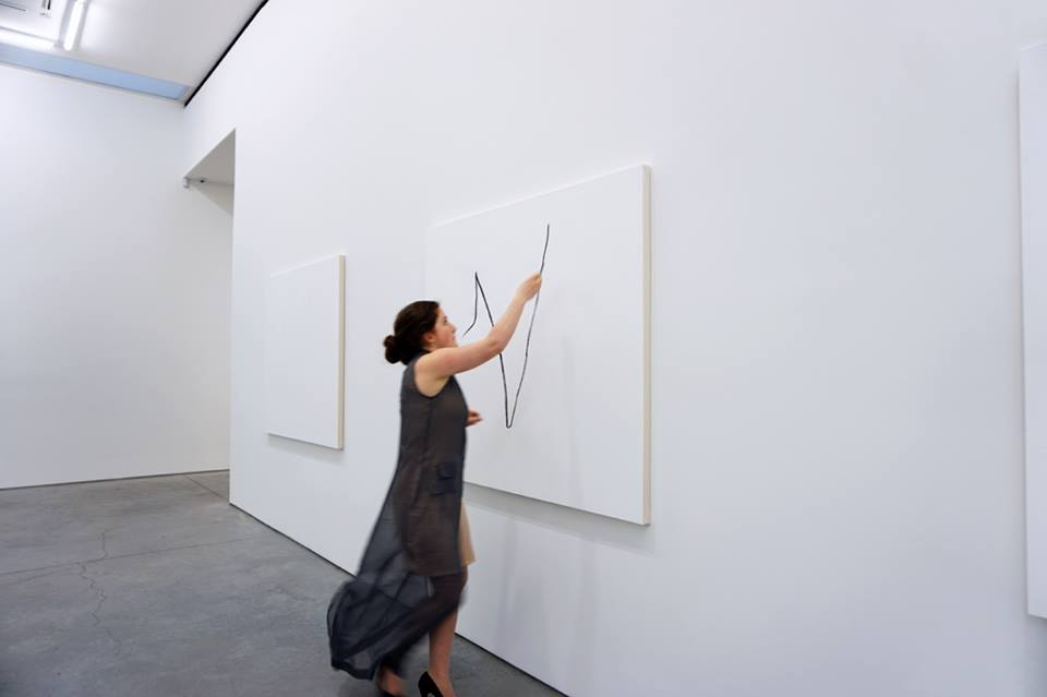 After her Yale graduation, she planned to open a gallery in her apartment, show her work in London, and prepare for a solo show in Chelsea, on stock performance and financial gambles as art. For a week she sat at a computer in the middle of the gallery and invested each day in a chosen low-performing stock until her investment moved the stock value up or down and she could record its movement on one of the canvases in the gallery. She wore a specially designed investor costume of gold pinstripe over banker’s gray.