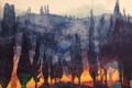 In May this was a Tuscan landscape at sunset, an etching by the friend of a friend. Yesterday, our copy, fresh from the framing shop, had morphed into a row of blackened trees in the foreground of an inferno.