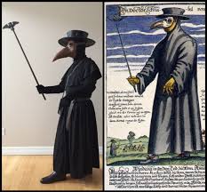 In the time of the Black Death, the curved beaks of Venetian plague doctor masks were filled with dried flowers, herbs and spices, or camphor. The mask was worn to keep away foul smells, known as miasma, that were thought to transmit the plague.